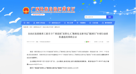 此次入选广西高校“双带头人”教师党支部书记“强国行”专项行动团队,是对必赢国际bwin教工第一党支部工作的高度认可和肯定。这一荣誉将激励着党支部全体成员继续努力,不断创新bwin手机版方法,提高bwin手机版质量,为学校的发展和广西的教育事业做出更大的贡献。