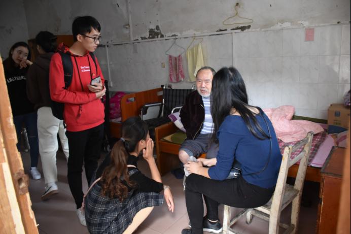 进入福利院后,支部书记刘晓亮、申智骅老师带领学生党员们热情主动的和老人们打招呼,找他们拉家常,老人们也高兴地你一句我一句和党员们寒暄起来。期间,党员同志们向老人们一一询问了近期的身体情况,日常生活、休闲娱乐等情况,不一会儿院子里就热闹起来,气氛十分温馨。随后,党员们分组给老人们收拾整理床铺、打扫房间卫生。