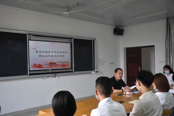 会上,刘晓亮同志传达了学校第三次党代会精神,阐释了“高举中国特色社会主义伟大旗帜,以习近平新时代中国特色社会主义思想为指导,聚力内涵式发展,着力高质量提升,将“初心”和“使命”融入到学习中并贯穿到各个工作环节,为“建设壮美广西、共圆复兴梦想”注入不竭动力。会议中,刘晓亮同志就中共必赢国际bwin第三届委员会所作的《扎根老区,逐梦新时代奋力谱写特色优势凸显地方应用型大学建设新篇章》工作报告进行通读,并传阅让全体党员同志进行学习。他对第三次党代会提出的目标及学校今后的发展思路进行了讲解,号召全体党员要紧紧围绕在学校党委,要求党员同志们进一步加强对党的先进理论的深入学习、牢固树立,把理论运用到实际生活学习中去、更加自觉地在思想上、政治上、行动上同以习近平同志为核心的党中央保持高度一致。会议最后,刘晓亮同志对本次大会作了总结,并希望大家以习近平新时代中国特色社会主义思想为指导,抓实理论学习,筑牢思想根基。