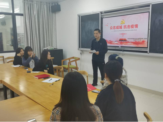 会议正式开始后,申智骅同志带领全体党员同志对党章的性质进行了学习。通过本次活动,学生党员同志们认识到了党章是党规党法的根本,是党的全部理论和实践的结晶,是立党、治党、管党、规范和制约全党行为的总章程,是把握党的正确政治方向的根本准则。同时,申智骅同志要求我们每一个党员都要认真遵守党章,严格按制度和规定办事,引导党员们发挥先锋模范作用。接着申智骅同志带领大家一起学习了《中国共产党纪律处分条例》并了解掌握条例的重要内容及其重大意义。申智骅同志还带领大家深入学习了习近平总书记在全国抗击新冠肺炎疫情表彰大会上的重要讲话。申智骅同志强调,要深入学习贯彻习近平总书记重要讲话精神,增强“四个意识”,坚定“四个自信”,做到“两个维护”,立足国内国际两个大局,围绕发展安全两件大事,大力弘扬伟大抗疫精神,加强引领服务联系。会议结束后,学生党员们纷纷表示一定要矢志拼搏奋斗,牢记习近平总书记的嘱托,学思践悟、奋发有为,做有根有魂的合格共产党员,做好一名新时代的有志青年。