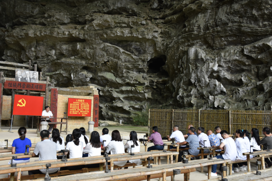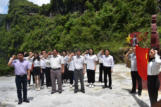 在广西农民运动讲习所旧址(列宁岩),全体师生党员干部现场聆听吴志鸿书记主持的专题党课,感悟东兰革命历史和伟大斗争精神。为在场的党员教师上了一堂生动的革命传统和党史学习教育课,吴书记强调指出:党史学习教育,就是要发扬革命前辈的崇高革命精神和奉献精神。把这种精神转化为,为学校“十四五”发展的动力,传承好红色基因,践行好初心使命,勇于担当,以优异的成绩迎接建党一百周年和我们学校建校70周年。