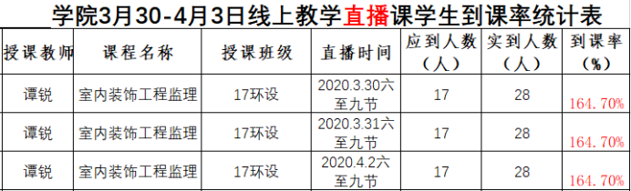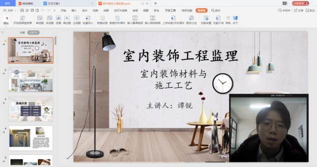 课中强调学生多学习工程材料的特性、室内施工规范及行业标准,树立规范、严谨的作风,培养学生职业素养。教师采取真人影像授课方式,学生反应直播无卡顿,真实感强,课堂氛围更好。课件制作图文并茂,加强清晰美观度,提升学生的学习过程中的观赏度及兴趣度。教学环节采取QQ一对一的线上指导方式,对学生提出的疑问详尽解答。