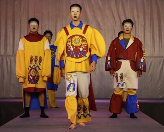 本次服装秀以“绽放”为主题,从青春的绽放、科技的绽放、传统文化的绽放、桂西北少数民族文化的绽放等几个方向展开探讨设计。此次T台秀分为成衣组、民族组、创意组三个系列。第一场成衣组开场,时尚的设计、合体的剪裁、舒适的面料、精美的线条,美丽的服装在模特的倾情演绎下更是栩栩动人。成衣组结束后由KYA街舞协会为我们带来的精彩舞蹈《4walks》把活动拉到高潮。第二组为民族组,从广西的壮锦到毛南族的傩面具,从山海经到惠安女,我们看到了设计师们的奇思妙想,看到了一个民族文化的传承。最后出场的是创意组,大胆鲜明的混搭,明亮跳跃的色彩,宽松洒脱的线条,创意与不规则的裁剪,设计师们将多元化的服饰语言融合于方寸之间,让时装表现得更有张力,让观众大饱眼福。最后T台秀在 KYA街舞协会精彩的舞蹈《16shots》下落下帷幕。闭幕式上,院领导跟设计师、模特进行合影。