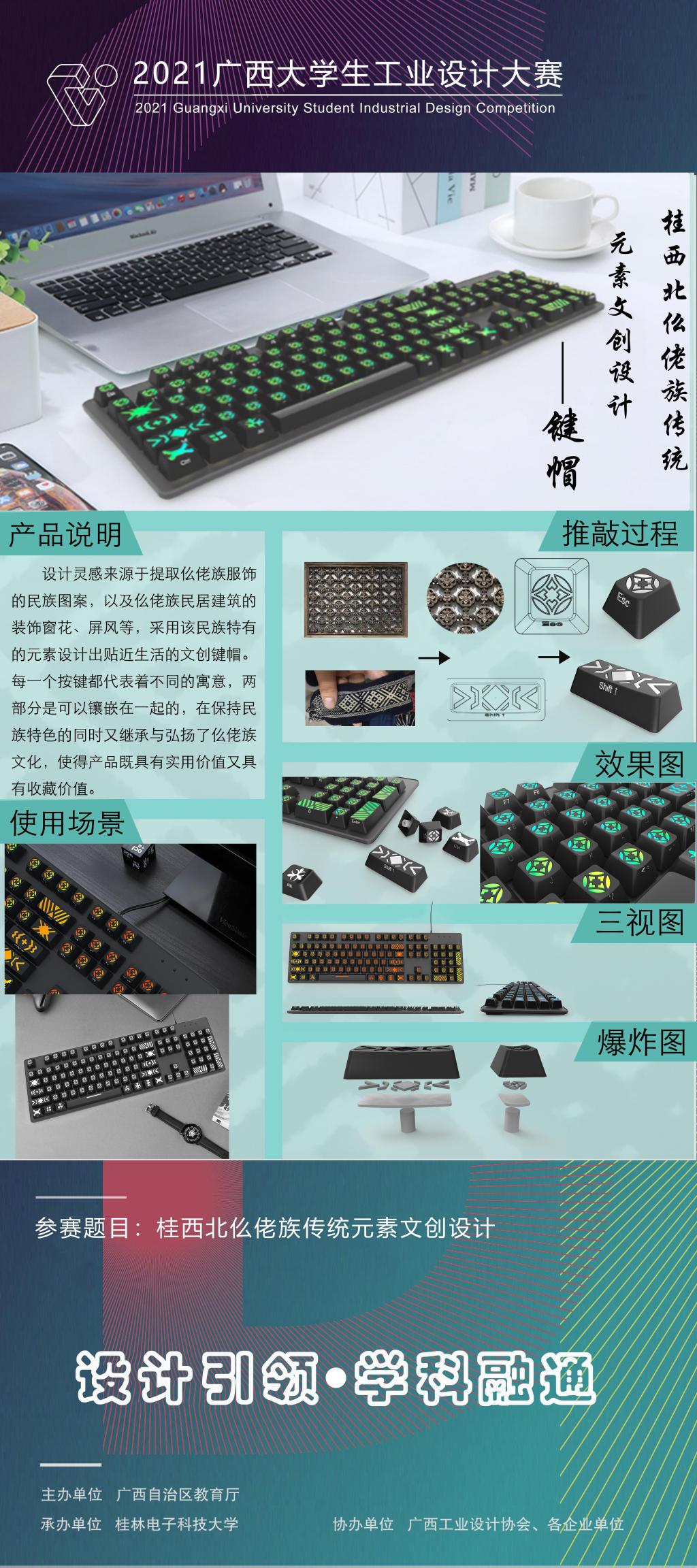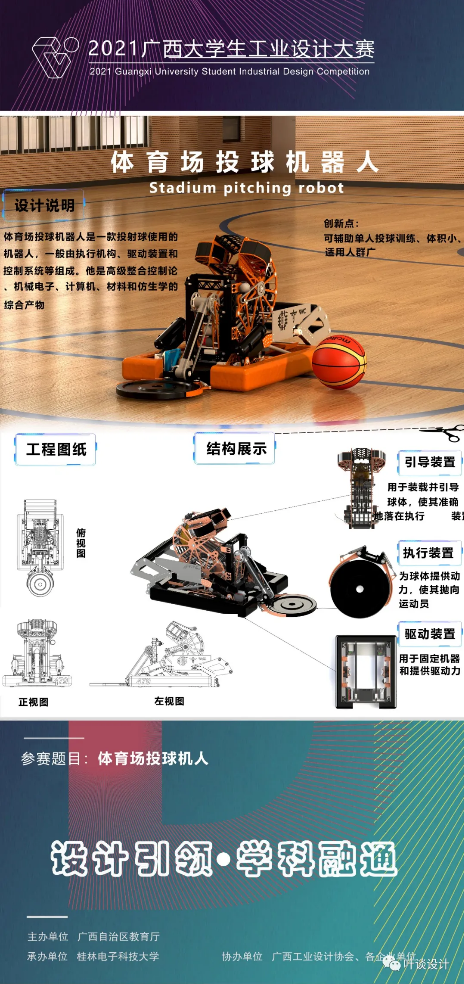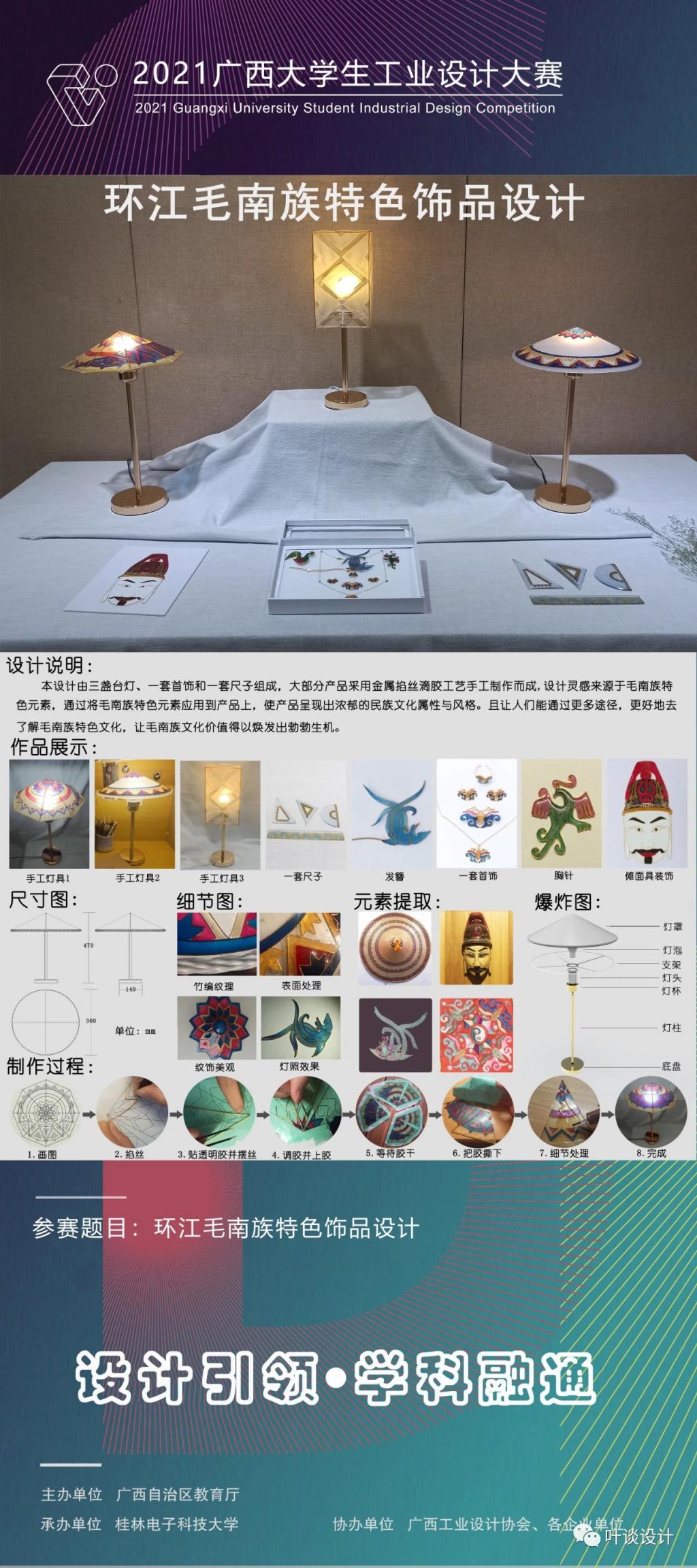 2021年我区教育厅举办28项大学生学科专业竞赛,第九届广西大学生工业设计大赛是教育厅所列比赛项目之一,由自治区教育厅主办、桂林电子科技大学艺术与设计学院承办。于2021年6月启动,共收到来自区内31所高校9355件作品,共评出一等奖393件,二等奖744件,三等奖1195件,优秀指导老师67名,优秀组织奖10所学校。