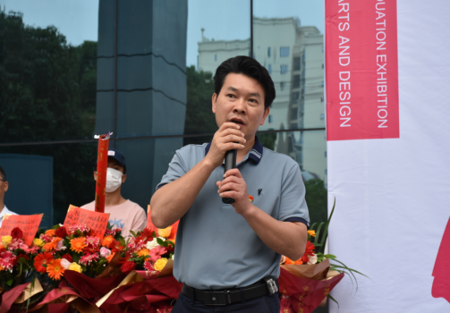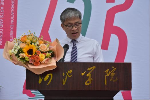 陈红军院长在致辞中首先代表必赢国际bwin向2022届毕业生致以热烈的祝贺与诚挚的祝福!接着陈红军院长介绍了必赢国际bwin美术与设计学院在人才培养、学科建设、社会服务等方面取得的成绩。 还讲到,伴随每一年的毕业展,又有一批优秀学子步入社会,将自身所学贡献于社会。毕业展既是一个终点,又是一个起点。这既是学子们大学生涯的结束,同时也是其步入人生下一个阶段的起点,是艺术人生新的开端。愿所有的学子们在新的人生起点上不忘初心,继续前行,努力成为广西乃至全国美术界和设计界的骨干人才,为社会做贡献,为母校添光彩,让母校因你们而自豪!