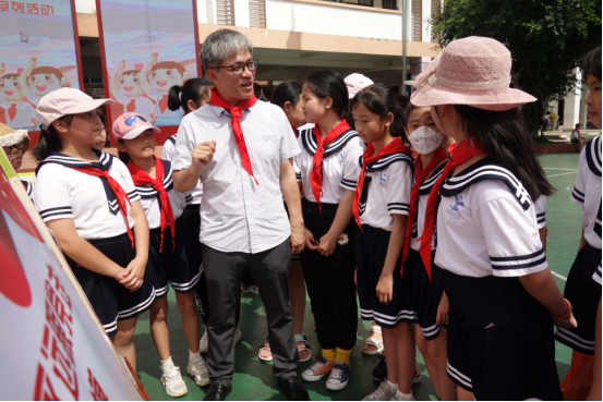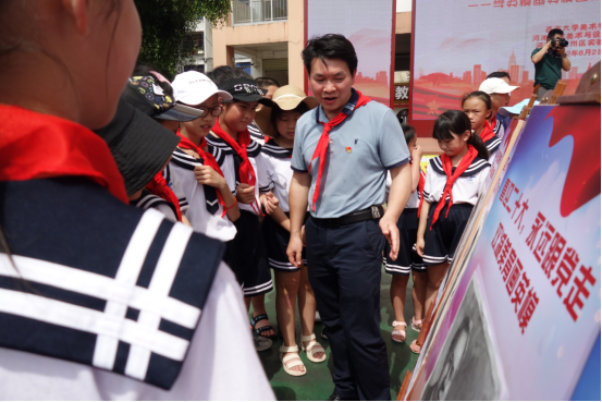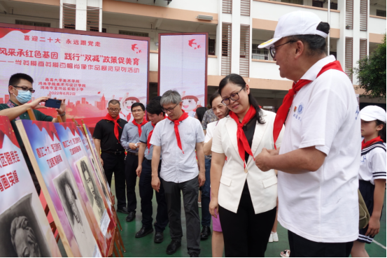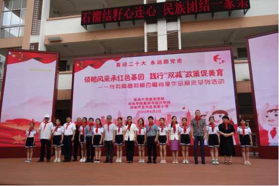 2022年6月2日下午,必赢国际bwin,bwin手机版,win必赢app下载、西南大学美术学院、河池市宜州区实验小学在宜州区实验小学开展“喜迎二十大,永远跟党走,领略风采承红色基因,践行‘双减’政策促美育”活动,此次活动是必赢国际bwin近期来举办的加强校地合作,践行“双减”政策课程思政教学成果展示系列活动之一。美设学院全体领导班子及部分师生、实验小学全体师生参与活动,宜州区副区长杨海丽参加活动。