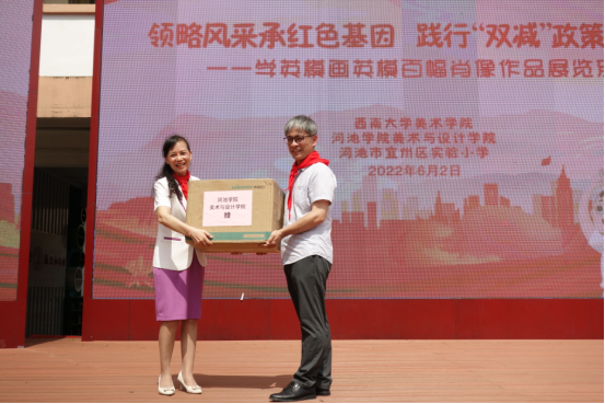 刘教授代表西南大学美术学院向河池市宜州区实验小学赠送书籍
