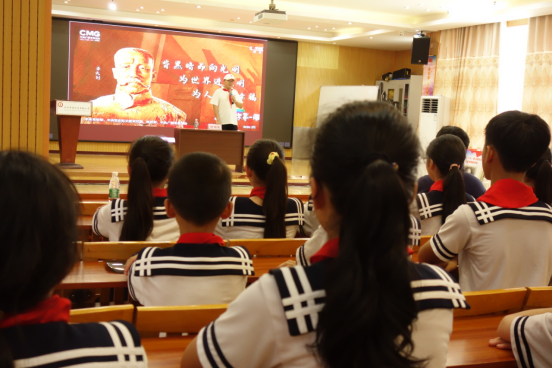 观展过后,刘增宪教授接着在实验小学的综合教室为四年级的学生演讲革命故事《李大钊》。刘教授声情并茂的演讲感染了在场的每一个人,同学们在聆听李大钊革命事迹的同时更坚定了为中华民族的伟大复兴而用功学习、为实现共产主义而努力奋斗的信心。整个演讲过程,师生们积极踊跃地与刘教授进行了互动,最后刘教授以毛泽东主席对青年人的寄语结束演讲。