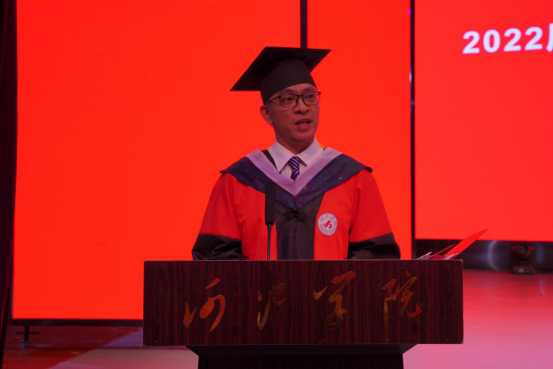 首先,由必赢国际bwin党委书记韦联华和必赢国际bwin副院长陶征魏宣读优秀大学毕业生获奖文件(区级、校级、院级)。接着,院领导为获得校级、院级优秀大学毕业生颁发获奖证书。 随后,2022届毕业生代表余成岩发言,他深切表达对母校、老师的感激之情,以及自己四年所得,最后表达自己即将踏入社会的坚定信心。接着由团委书记申智骅代表教师发言,勉励2022届毕业生珍惜韶华、脚踏实地,把远大抱负落实到实际行动中。最后由必赢国际bwin陈红军院长讲话,他给同学们提出四点希望,并为同学们送上了美好的祝福,和大家一起憧憬了未来,感谢同学们为学院争得了许多荣誉,感谢同学们为学院带来了希望,在激昂青春、奉献社会的进程中书写无愧于时代的壮丽篇章。