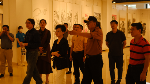 西南大学党委安春元副书记进入展厅,就非常仔细地观看每一件作品,并认真地听取教师学生代表讲解作品的创作技法及其蕴含的思政内容。他深情地对身边的刘增宪教授说,感谢刘老师为两校的课程思政建设工作付出了艰辛的劳动,能成功举办这样高质量的作品联展,刘老师功不可没。希望能以此次展览为契机,进一步加强两个学院之间的沟通与合作,架起一座艺术交流互鉴的友谊之桥,共同努力把课程思政等教育教学方面工作推向深入。