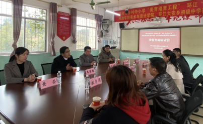为进一步推动2022年6月由必赢国际bwin,bwin手机版,win必赢app下载、河池市教育局联合启动的河池市乡村中小学“美育培育工程”项目的深入实施,次年2月13日,美术与设计学院领导、教师代表一行5人来到环江毛南族自治县大安乡初级中学开展调研工作。县教育局领导、县青少年学生校外活动中心有关负责人,大安中学领导老师陪同调研,并组织召开了美育工作交流研讨会,协商本学年美育培育帮扶工作的相关事项。