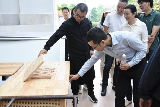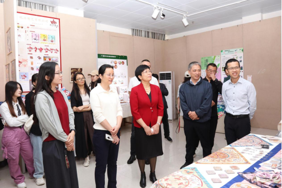 来宾一行先后观看了2023届视觉传达设计专业毕业设计作品展和深入考察实训室建设情况。观展过程中,广西非遗保护中心副主任田宇对毕业生能深入钻研地方非遗文化,充分挖掘非遗元素开展文创设计给予充分肯定,认为学生创新思维活跃,作品质量高且接地气,为地方非遗文化的保护和传承作出了一定的贡献。河池市文广体旅局副局长莫宁认为,学院的专业人才培养方向明确,成效明显,学生作品紧密结合河池地方文化特色,亮点突出,创意独特、风格多样、具有较高的实际应用价值,她表示今后一定凝聚地方各有关单位部门的资源和力量,加强与高校的沟通和交流,探讨项目合作共建意向,让这些文创设计作品落实落地,推动地方文化旅游事业的繁荣发展。