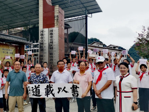 课堂教学结束后学校组织了座谈会,就地方民族文化进美育课堂等方面进行交流。刘增宪教授还给学校赠送红色书籍和画册,卢和华老师赠予内容为“书以载道”的书法作品。