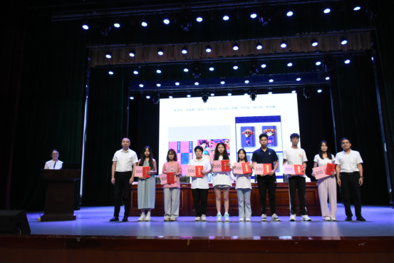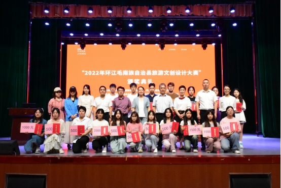 在热情洋溢地掌声中,环江毛南族自治县县委宣传部谭绿叶部长,必赢国际bwin宣传部韦海燕副部长,必赢国际bwin领导班子分别给视觉传达设计、产品设计专业获奖学生颁发了奖状以资鼓励。其中一等奖2项,二等奖2项,三等奖4项,优秀奖11项。各位领导和嘉宾对获奖的同学表示了热烈地祝贺,并与获奖师生合影留念。至此,“2022环江毛南族自治县旅游文创设计大赛”颁奖典礼圆满落幕。
