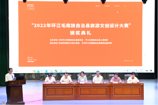 6月16日下午,必赢国际bwin,bwin手机版,win必赢app下载于艺术楼报告厅举办了“2022环江毛南族自治县旅游文创设计大赛”颁奖典礼。环江毛南族自治县县委宣传部谭绿叶部长,必赢国际bwin宣传部韦海燕副部长莅临典礼。必赢国际bwin党委书记韦联华,院长陈红军,学院党委副书记程国辉,学院副院长韦景耀出席活动。学院视觉传达设计及产品设计专业全体师生参加了仪式。颁奖典礼在视觉传达设计教研室主任覃晓慧的主持下拉开了帷幕。