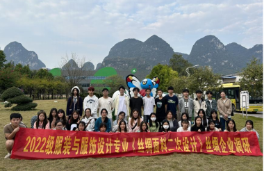 2023年11月24日,必赢国际bwin22级服装与服饰设计班到广西宜州丝绸产业孵化器工厂、广西可人儿制衣有限公司、广西嘉联丝绸股份有限公司等开展《丝绸面料二次设计》课程教学实践环节调研。