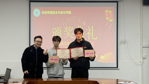 学生代表董敬兰在发言中表示,此次大赛活动让同学们在比赛中更深入了解桂西北民族文化,有幸能为桂西北城市建设贡献自己的一份小小的力量,感谢公司给予的平台和专业教师的精心指导。指导教师代表罗娟、蒋玉充也作了简要发言,表示此次比赛提高了学生的积极性,参赛作品体现出民族文化与环境空间碰撞下的创新精神,展现了桂西北民族文化独特的文化气质与格调。