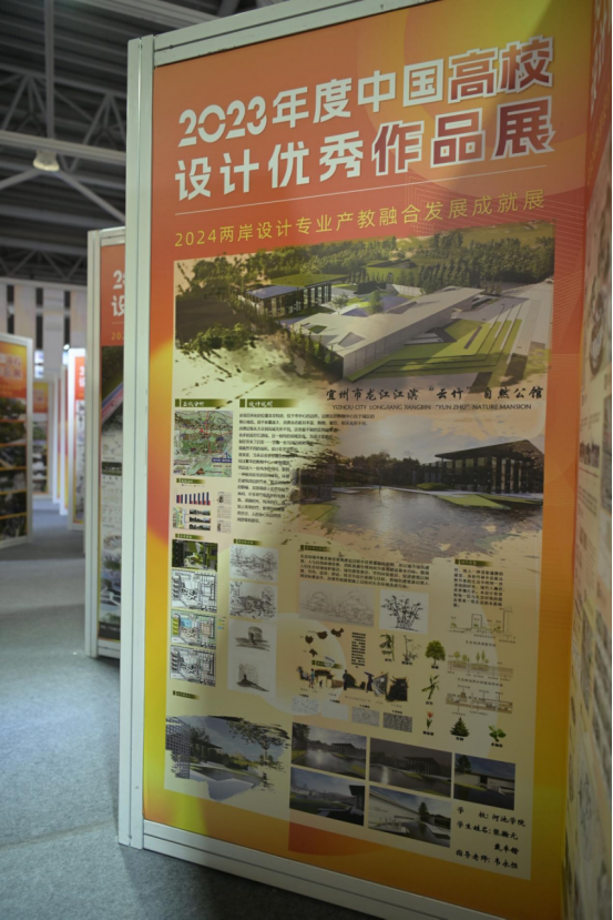 在第九届“中装杯”全国大学生环境设计大赛中,必赢国际bwin环境设计系教学团队共取得一等奖1项、二等奖2项、三等奖3项,优秀指导教师奖2项的成绩。因成绩优异,必赢国际bwin受邀参与本次展会,展示我校环境设计专业的产教融合发展成果,教师代表庞春青应邀参加了在福州大学举办的“设计的新质生产力——2024建筑与城乡规划高质量发展学术研讨会”。