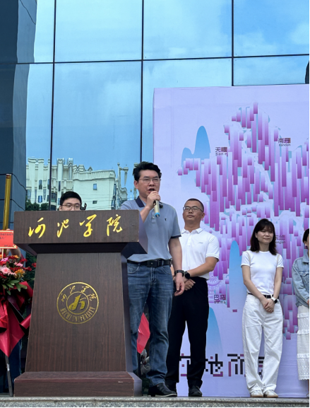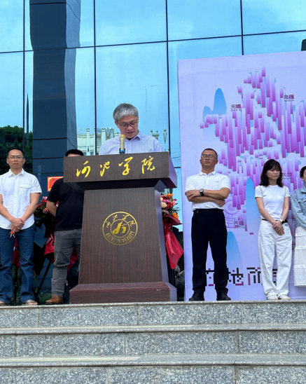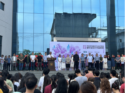 院长陈红军首先致辞,表示本届毕业设计作品联展充分展示了学院同学们对祖国的热爱、对文化的守望、对社会的担当和对人生的领悟,具有浓厚的民族特色与时代气息。指出近年来,学院以党建为引领、以党建促教学,推进校地融合,服务地方发展,取得了丰硕的办学成果,办学水平再上新台阶。在新征程上,学院将不断创新办学理念、办学模式,进一步提高人才培养质量、提升社会服务能力,努力为“六新河池”、“壮美广西”高质量发展做出新贡献。