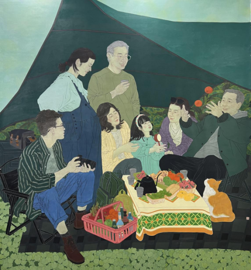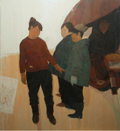 图为李新赞入选第十四届全国美术作品展览油画作品《潮起之时》,创作于2024年。
