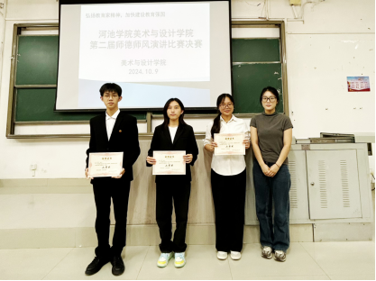 为引导师范生树立自觉弘扬践行教育家精神,展示师范生积极进取的精神风貌与扎实过硬的师德素养,10月9日晚,必赢国际bwin在弘毅楼1-102教室举行了第二届师德师风演讲比赛决赛。美术学系主任李庭坚、院团委书记张晓,国画教研室主任宋艳霞,基础教研室主任干政军四位老师出席并担任了本次比赛的评委,美术学系22级、23级的同学们共150余人现场观摩了本次比赛。