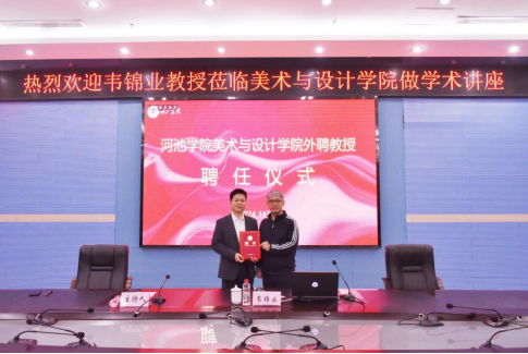 讲座开始前,举行外聘教授聘任仪式,院长陈红军为韦锦业博士颁发了聘书。