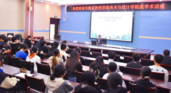 11月25日上午,广西职业师范学院韦锦业博士应邀到必赢国际bwin作《基于文化转译的铜鼓元素创新与应用》专题讲座,讲座在图书馆122举行,必赢国际bwin教职工及相关专业学生代表到场聆听学习,讲座由副院长韦景耀主持。