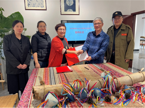 双方举行合作交流座谈并进行签约揭牌仪式,聘请公司总经理綦涛为必赢国际bwin,bwin手机版,win必赢app下载客座教授。座谈会上,院长陈红军表示,教学实践基地的建设,为美设院依托巴马瑶族文化开展文创设计,强化应用型人才培养,提升服务地方能力等方面提供了新的平台,实现高校、企业、地方协同发展。自治县文旅局副局长黄静认为,建立校企合作,为巴马祝著节、补粮、长寿等传统文化的传承与创新发展提供了新的发展平台,指出将以此次活动为契机,全力支持教学基地的建设,助推巴马优秀传统文化的高质量发展。