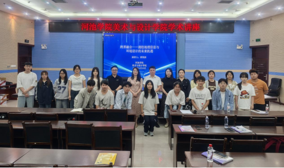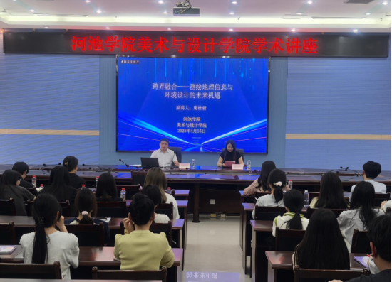 唐桂新在讲座中列举了实际项目案例,展示测绘地理信息技术如何支持从地形分析到景观建模的全过程,强调数据在设计中的重要性,让学生们更加直观地了解到测绘地理信息数据在环境设计中的重要作用。