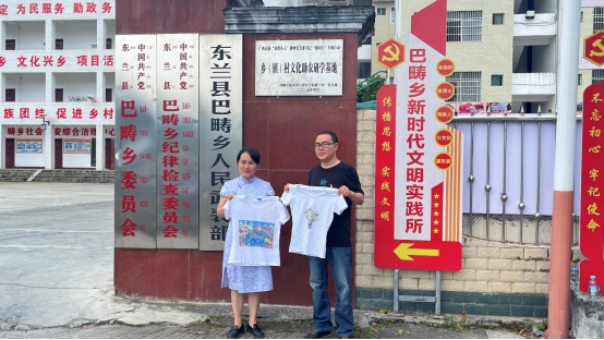 活动现场,团队向巴畴乡捐赠了 40 余件视觉美学作品,内容涵盖民族纹样数字艺术画、蚂拐节文化插图等,还赠送 20 余件融入蚂拐节文化T恤衫。这些作品巧妙融合巴畴乡的梯田景观、壮乡歌圩等文化符号与现代设计理念,为乡村文旅产品开发、视觉形象升级提供了专业方案。