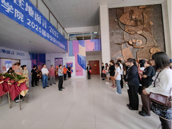 在展厅现场,专业指导教师向院领导详细汇报了本届毕业作品展览的主题定位,以及毕业生们的整体创作情况。书记与院长认真聆听了同学们对个人作品的阐释,高度评价了学生的创新思维和社会责任感,强调设计应平衡艺术表达与实用功能,鼓励毕业生在文化传承与商业价值之间寻找突破点,将毕业设计与地方少数民族文化传承、区域经济发展紧密结合。