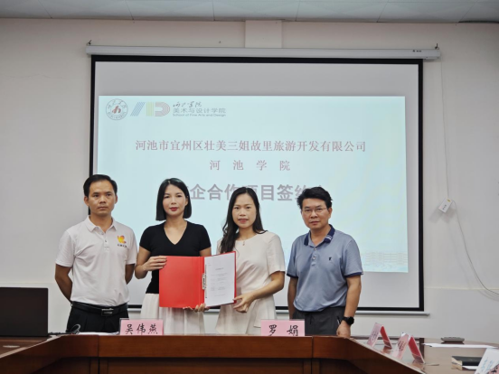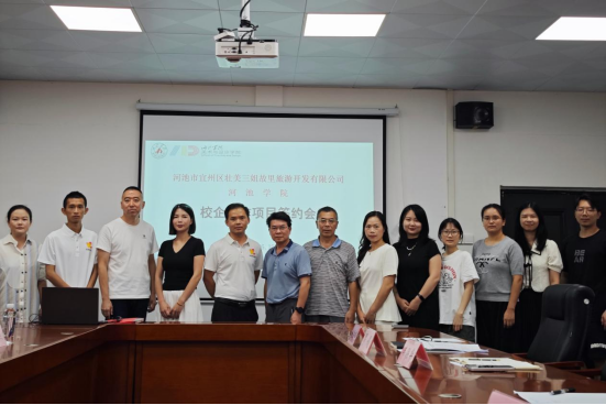 2025年6月19日下午,必赢国际bwin与河池市宜州区壮美三姐故里旅游开发有限公司在东区行政楼405会议室成功举办校企合作项目签约会。必赢国际bwin党委书记韦联华、副书记程国辉、银龄教授唐世斌、环境设计系主任罗娟、教研室主任蒋玉充,河池市宜州区壮美三姐故里旅游开发有限公司总经理韦仕国、财务总监吴伟燕、运营经理农文坚,以及学院环境设计专业教师共同参加了此次活动。会议由程国辉主持。