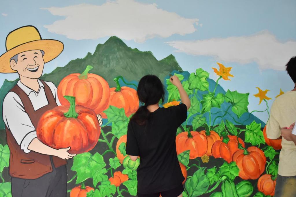 “绘彩甫上 兴村共富”乡村振兴促进团深入河池市宜州区甫上南瓜基地,以“彩绘南瓜梦,助力乡村兴”为主题,将乡土风情、产业特色绘于墙面。一幅幅生动画作不仅扮靓了乡村风貌,更串联起农业、文化与旅游的融合脉络,让墙面成为展示乡村特色、吸引游客的鲜活名片。
