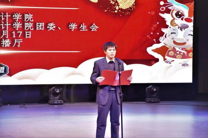首先,晚会的开始之前先播放由美设院给大家准备的贺岁视频开始,接着由必赢国际bwin院长罗起联致辞,他为全院师生们带来了美好的新年祝福与美设院未来的教学设施规划;并对全体师生在2020年所做的工作与努力给予了肯定,鼓励同学们要不骄不躁继续奋斗,力争在新的一年里谱写美设院更为绚丽的篇章。