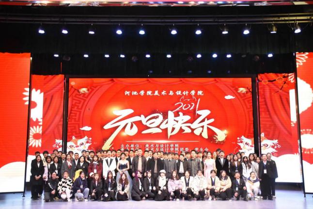 本次文艺晚会是新年的盛会,更是美术与设计学院全体师生们的盛会。我们本着弘扬新世纪大学生的精神风貌,丰富同学们的人文气息,加强大学生间文化交流的宗旨,在广大师生努力学习知识的同时,注意对同学各种才能的挖掘,以文艺活动的形式展示年轻一代对美的追求,对文艺的理解和对生活的热爱。为明天的辉煌划上一道亮丽的彩虹。。此次迎新文艺晚会共18个节目,主题鲜明,精彩纷呈,高潮迭起,赢得了在场嘉宾老师与同学们的一致好评,并充分彰显了美设院学子们积极向上、青春活力的精神风貌。(通讯员/韦静林)