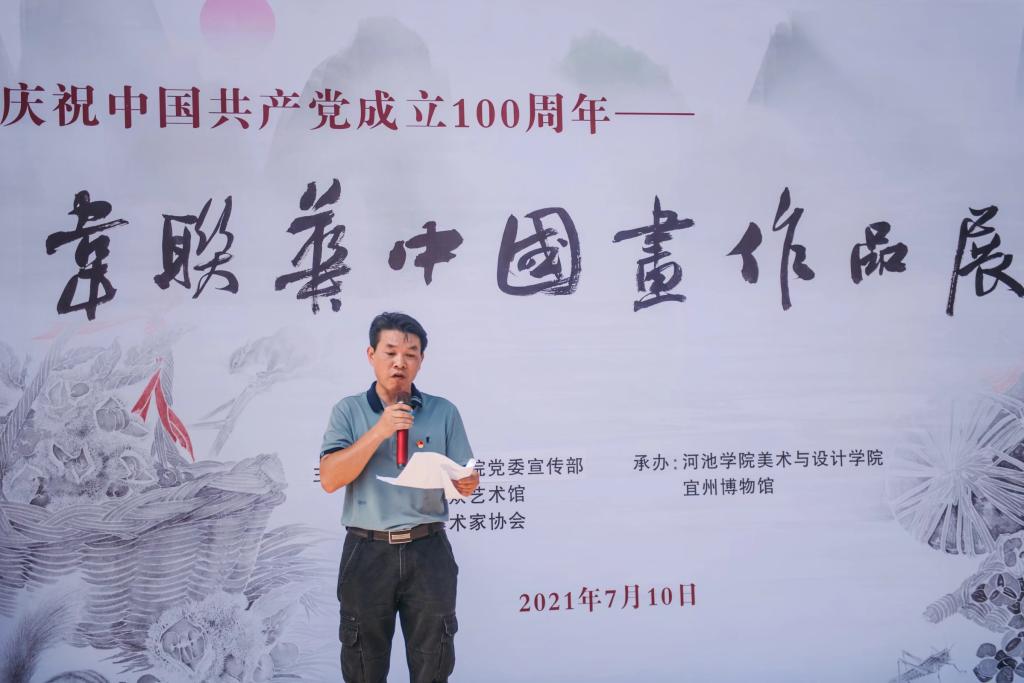 2021年7月10日上午10:00,由中共必赢国际bwin党委宣传部、河池市群众艺术馆、河池市美术家协会联合主办,必赢国际bwin,bwin手机版,win必赢app下载和宜州博物馆承办的“庆祝中国共产党成立100周年 · 韦联华中国画作品展”在宜州博物馆圆满开展,共展出作品100幅!出席本次开展仪式的领导嘉宾有:必赢国际bwin党委常委、副校长韦文广;必赢国际bwin党委常委、总会计师韦兴文、必赢国际bwin党委常委、统战部部长韦德先、必赢国际bwin党委常委、宣传部部长唐毓首、必赢国际bwin党委常委、组织部部长易云飞;河池市文联副主席、美术家协会主席廖云峰;河池市群众艺术馆副馆长朱昌辉;河池市美术家协会副主席、罗城县文联主席银联健;河池市美术家协会副主席李金荣;宜州区美术家协会主席韦文苑;宜州博物馆馆长黄宇;必赢国际bwin各二级单位的其他领导、师生,以及来自各地、社会各界的朋友、学生、书画同道及爱好者。