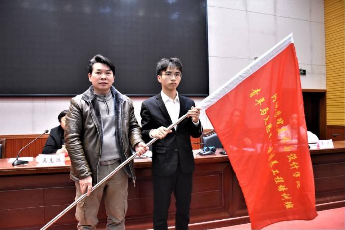 (党委副书记韦联华授旗于青马班学员们)