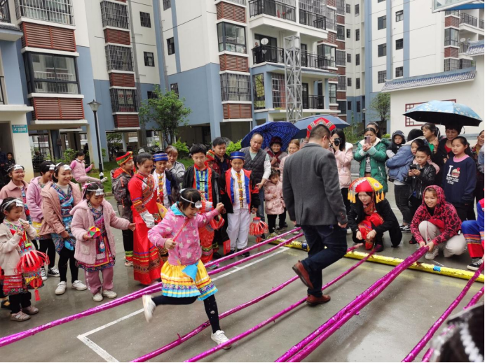 (大家一起玩壮族特色娱乐活动竹竿舞)
