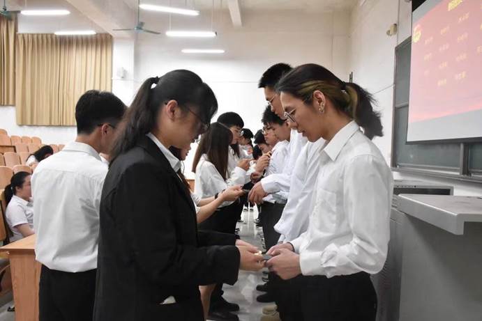 为加强学院共青团建设,增强必赢国际bwin团员青年进取精神,进一步坚定共产主义信念,引导广大团员积极投身中国特色社会主义建设的伟大事业,高举爱国主义旗帜。必赢国际bwin在2021年5月7日于弘毅楼1—102教室召开“我为团旗添光彩,坚定信念跟党走”新团员入团仪式。本次会议由播音主持团队的胡湘林主持,各班团支书与新团员、老团员都积极参与。