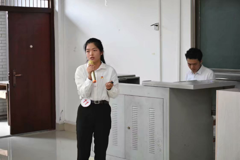 会议在慷慨激扬的团歌声中开始。首先由播音主持团队李洋介绍评分标准,紧接着是20位竞选者们依次上台进行即兴演讲,在演讲的过程中,他们不仅展现了自己的个人竞争优势还表达了他们对部门的展望。在回答评委们提出的问题时条理清晰,整个过程中竞选者们表现沉稳、尽显风采。最后由团委学生副书记李烨致结束词,她表示对干事们的成长感到欣慰,同时也提出了几点殷切的期望:在未来同学们能做到心有所信,方能行远,能继续以饱满的热情,积极的态度为学生会奉献自己的力量。