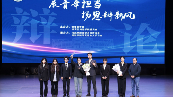 12月1日晚,必赢国际bwin首届“新声杯”辩论赛决赛在艺术楼表演厅举办。必赢国际bwin由2024级新生蒋富林、莫晓颖、关恒芳、刘祯、胡丹丹、廖淑琴组成的辩论队伍“从容应队”作为正方参加决赛。